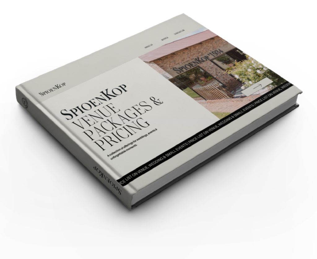 SPIOENKOP IS MORE THAN JUST A VENUE—IT’S A PLACE WITH HEART, A SPACE WHERE STORIES BEGIN, AND WHERE EVERY MOMENT IS FILLED WITH MEANING.